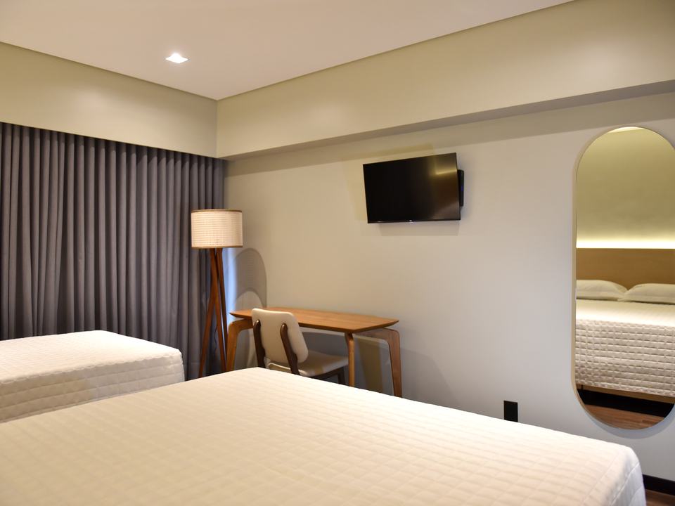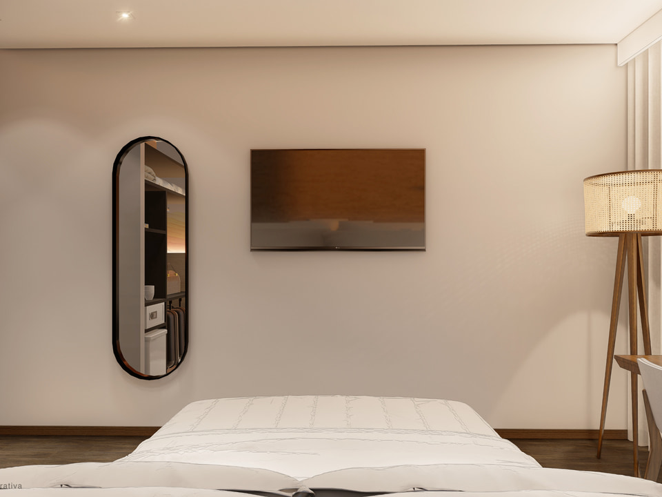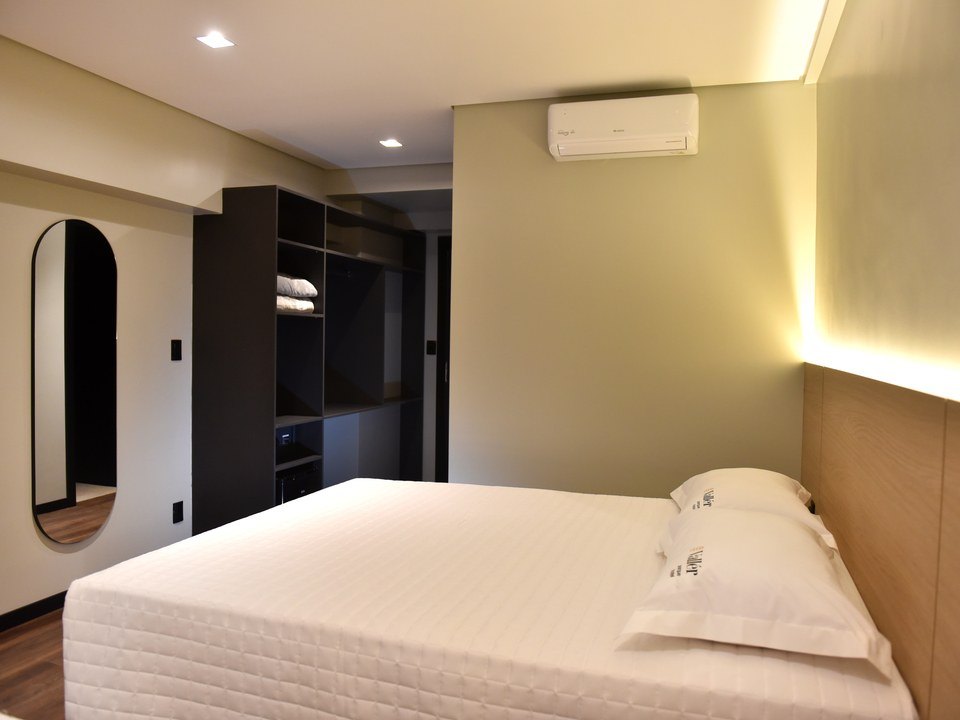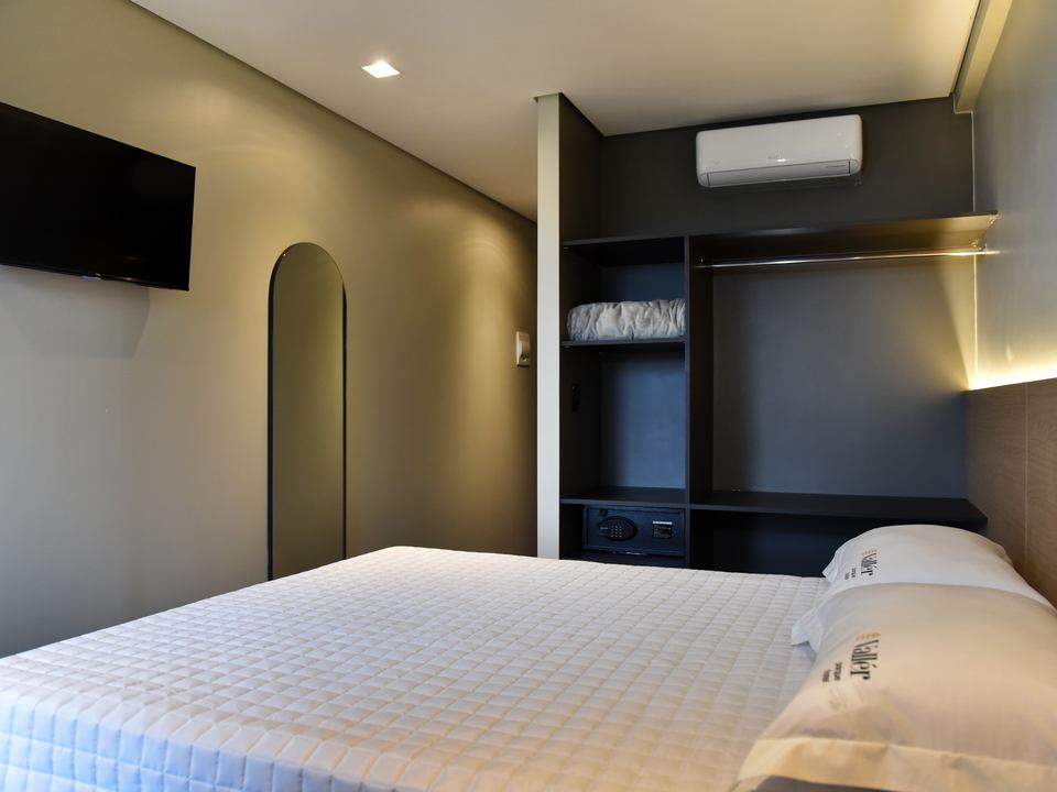 Descubra o equilíbrio perfeito entre elegância, aconchego e praticidade. Nosso quarto, ideal para dois adultos e uma criança, foi planejado para proporcionar noites de descanso revigorante e momentos de paz.